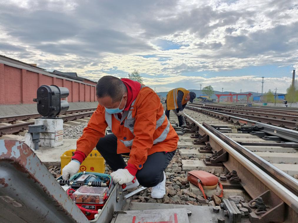 齐齐哈尔电务段加格达奇信号车间作业一工队负责加站信号设备日常养护维修工作。他们每周至少有一次养护检修加站信号设备的作业,遇到施工繁忙期,连续几天甚至十几天在站场上忙碌,更是家常便饭。虽是5月下旬,但清晨的气温也就在3℃左右,室外作业依然有些寒凉。