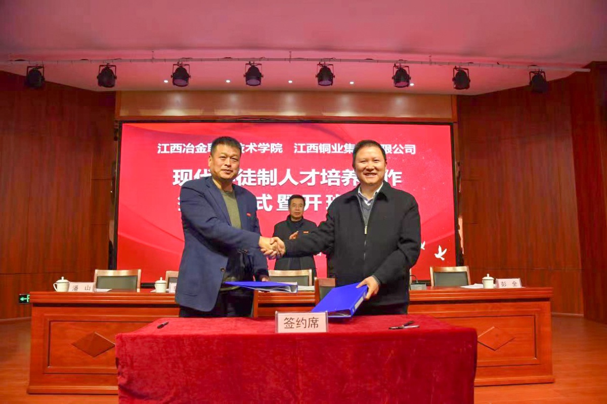 据了解,今年年初,学校与江铜在2019年协议的基础上,进行了合作再升级。按照协议,校企双方“共同建设互聘共用的师资队伍”,江铜将深度参与教学和实训指导,并以每5名学生配备2位“企业导师”的标准打造定制班。双方总结实践经验,丰富教学内容,凸显现代学徒制特色,主要体现在“六个对接”上:一是校长与厂长对接。校领导分别与企业管理层建立联系议事制度、交流学习制度,实行共同管理。二是课堂与车间对接。实施企业班组化管理模式,1个师傅带2至3个徒弟,把课堂搬进车间,把理论应用生产,让学生“真枪实弹”上岗上手。三是学习与需求对接。每年年底学校对企业开展需求调研,按企业人力资源计划,量身打造人才培养方案,确保课程设置、教师选配、教材配备配套对接。四是教师与师傅对接。引进企业能工巧匠担任企业导师,与学校骨干教师共同组建“双导师”团队,共同制订专业人才培养方案、构建课程体系、开发实训教材,共同实施教学。五是课程与标准对接。构建基于职业岗位工作过程的“岗位能力主导型”课程体系,由校企联合教研室牵头,各试点专业项目建设组负责,共同开发网络资源、特色教材、实训活页。六是毕业与就业对接。学生即学徒,经过校企双主体培养,取得“学历证书+技能证书”双认证,实现毕业即就业的无缝对接。