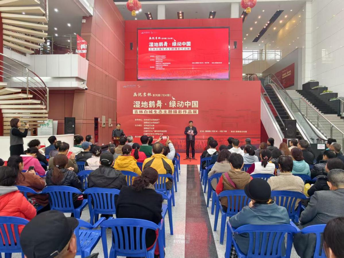 12月4日,由吉林省文化馆联合湖南省文化馆主办的“画说吉林”系列之“湿地鹤舞·绿动中国”吉林白城生态主题摄影展,在湖南省文化馆艺术长廊正式拉开帷幕。作为湘吉两省文化交流的盛事,此次展览以镜头为媒定格湿地之美、鹤舞之灵,生动讲述吉林生态保护故事,更标志着这一承载黑土地深情的文化品牌迎来第104次精彩绽放。