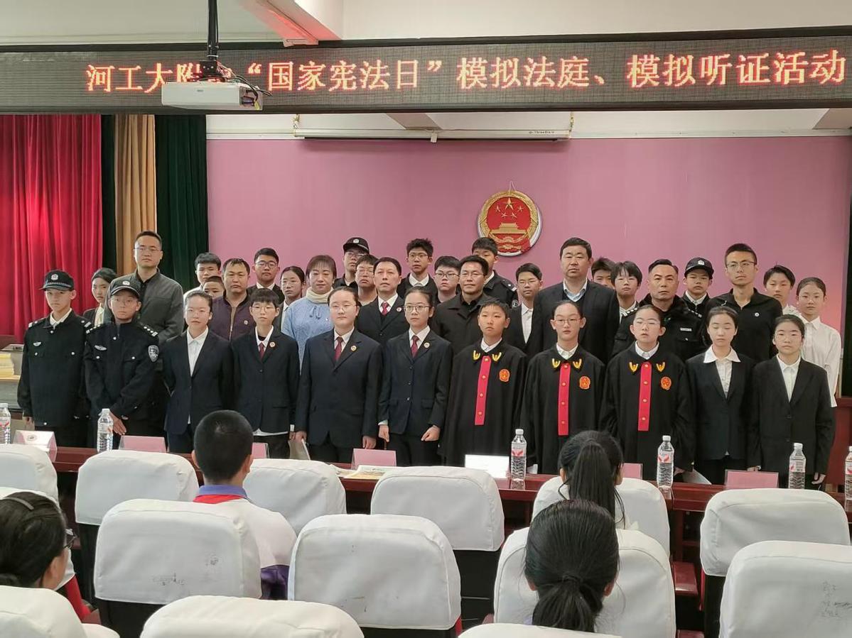 宪法日,校园变身为生动的法治实践课堂。同学们身着角色服饰,沉浸式地将“模拟法庭”与“模拟听证会”搬上校园舞台。