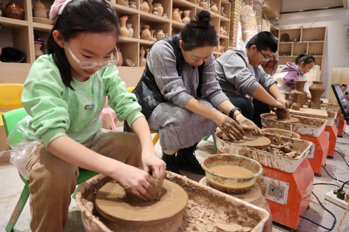 击鼓、弹琴、放歌,乐者沉醉一方;土陶转盘轻转,陶泥在手中凝韵塑形;支起画架,笔尖勾出欢喜的模样……12月7日,在温暖的龟兹非遗工坊,不少市民和游客专程前来,沉浸期间,亲手体验中触摸非遗的温度。