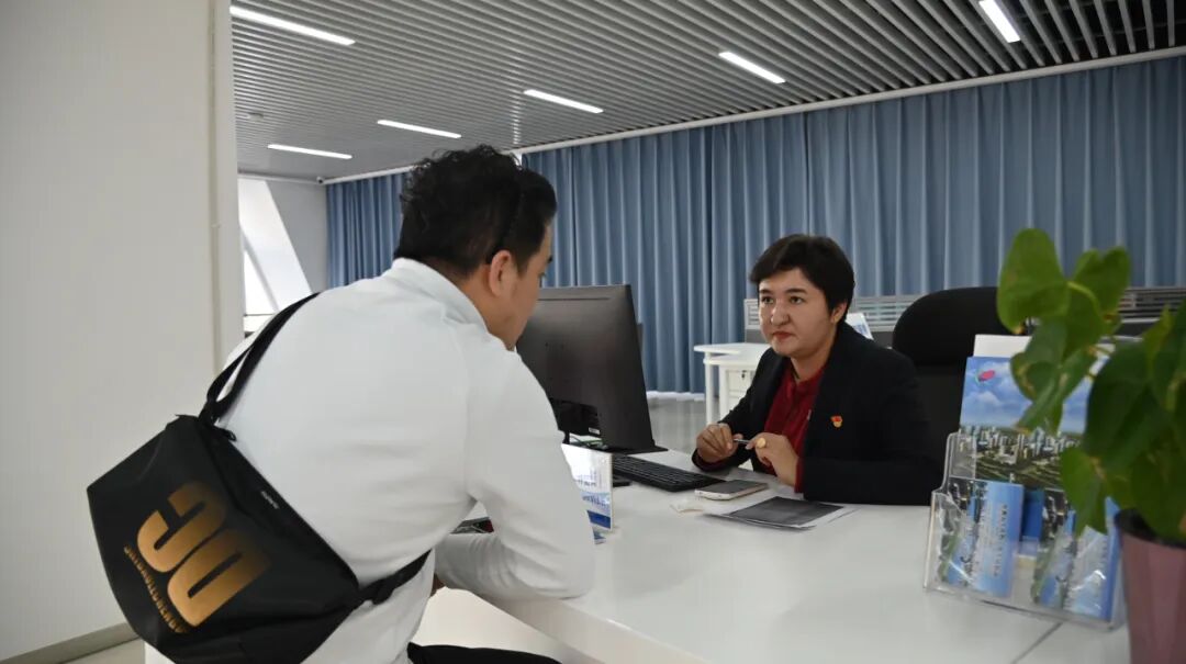 11月11日,自贸试验区喀什片区服务大厅里,工作人员正在给企业负责人解读相关优惠政策。喀什地区融媒体中心 张吾乐 摄