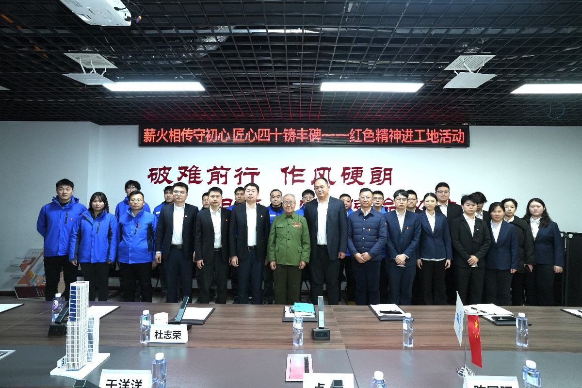 92岁高龄的“庆祝中华人民共和国成立70周年”纪念章获得者、天津市道德模范杜志荣老战士,向青年建设者宣贯党的二十届四中全会精神,并动情讲述解放战争峥嵘岁月,将红色基因深植城市地标,为中建深装四十华诞注入精神动力。