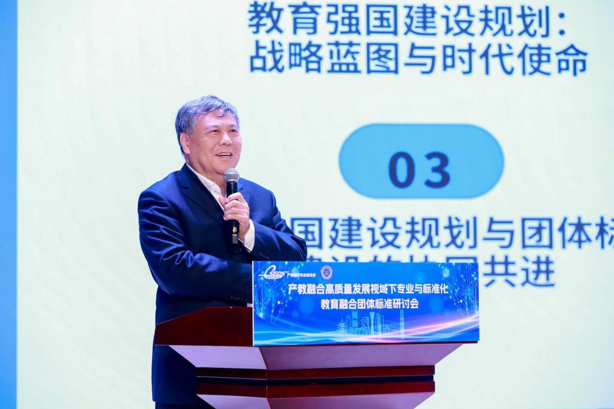 开幕式上,中国教育发展战略学会教育标准专委会理事长、北京师范大学原副校长陈光巨指出,当前我国正处于全面建设社会主义现代化国家新征程的关键阶段,《教育强国建设规划纲要(2024—2035年)》《国家标准化发展纲要》等重大文件均将标准化定位为支撑高质量发展的基础性制度安排。中国教育发展战略学会产教融合专委会理事长、清华大学继续教育学院原党委书记刁庆军在致辞中指出,职普融通、产教融合、科教融汇,离不开标准引领。并就行业产教融合综合体和市域产教联合体标准体系建设发表了建设性的观点。