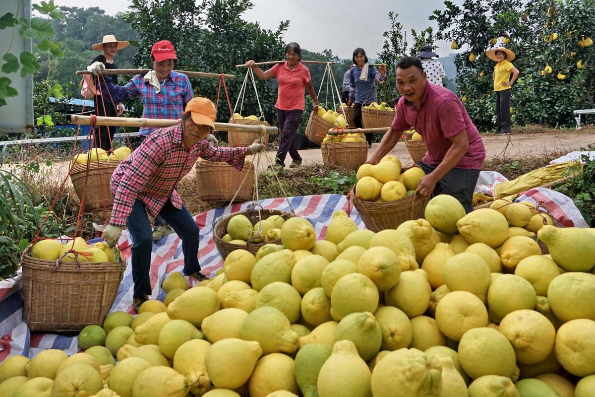 果农在沙田柚种植基地采摘搬运 容县农业农村局供图