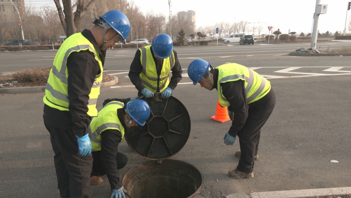 在世纪大道与石河子路交叉路口,工作人员正在对管道井进行巡检,对井下供水阀门进行系统排查,手动测试阀门启闭的灵活性与闭合严密度,并重点检测密封垫片是否存在滴漏或不易察觉的暗漏隐患,确保管网节点在低温条件下的可靠运行。