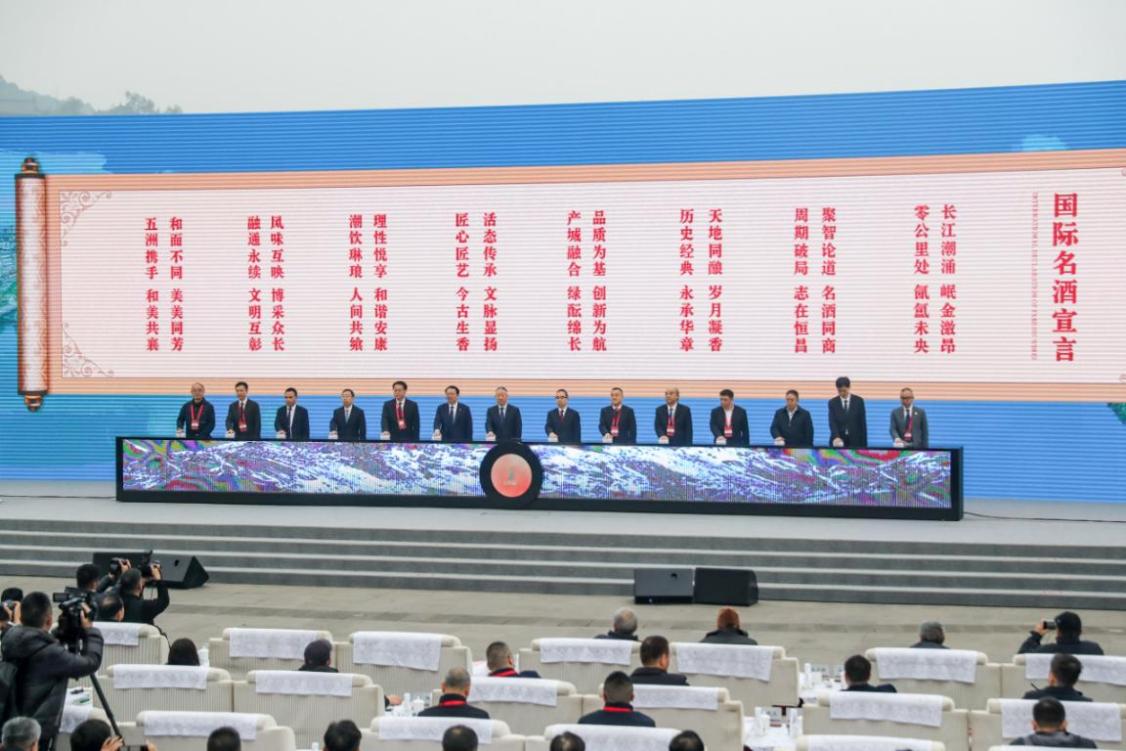开幕式上,中国酒业协会理事长宋书玉与中国贵州茅台酒厂(集团)有限责任公司党委书记、董事长陈华,五粮液集团(股份)公司党委书记、董事长曾从钦,泸州老窖股份有限公司党委书记、董事长刘淼,法国保乐力加中国副总裁陈伟等十余位中外知名酒企代表共同发布《国际名酒宣言》,凝聚了全球酒业在品质、生态、技艺与可持续发展上的坚定共识,开启了“五洲携手、和美共襄”的新篇章。