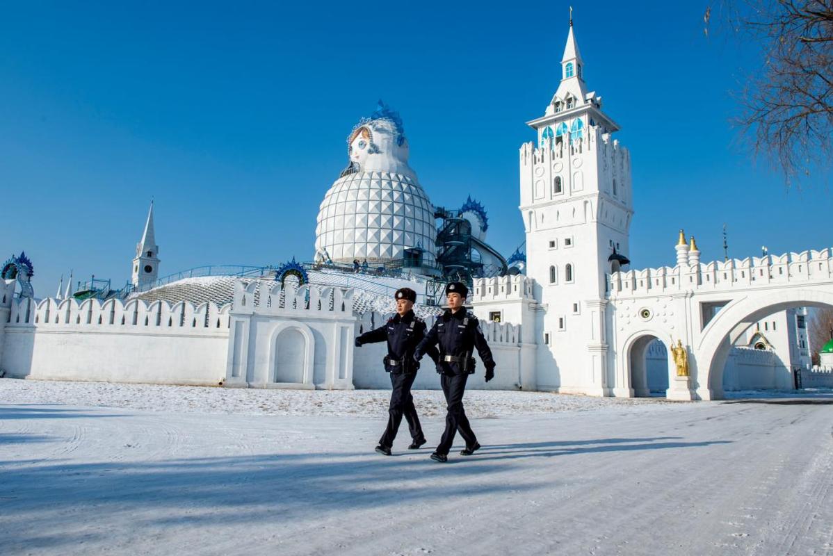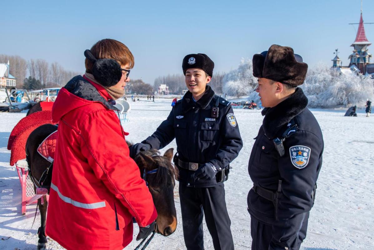 雪绘雕栏境,冰城入画纱,哈尔滨香坊区伏尔加庄园银装素裹,俄式城堡与冰雪雕塑交相辉映,来自全国各地的游客们沉浸在“童话世界”般的美景中。随着冰雪旅游旺季到来,景区单日客流量屡创新高,而在这片热闹景象背后,哈尔滨市公安局香坊分局的民警辅警们化身“冰雪守护者”,用“警景融合”的创新模式、四维立体的巡防网络和暖心贴心的为民服务,为每一位游客的平安之旅保驾护航。