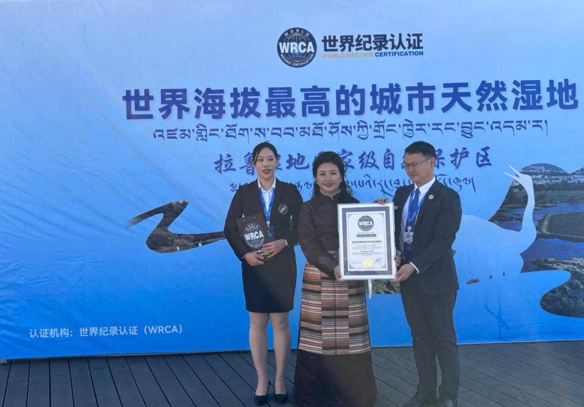 拉鲁湿地国家级自然保护区管理局局长拉姆次仁表示,WRCA认证官现场授予拉鲁湿地世界纪录称号并颁发证书,标志着其生态价值获国际权威认可,既是对拉萨生态保护工作的肯定,也是向世界展示中国高原生态文明建设成果、贡献全球湿地保护中国智慧的重要窗口。