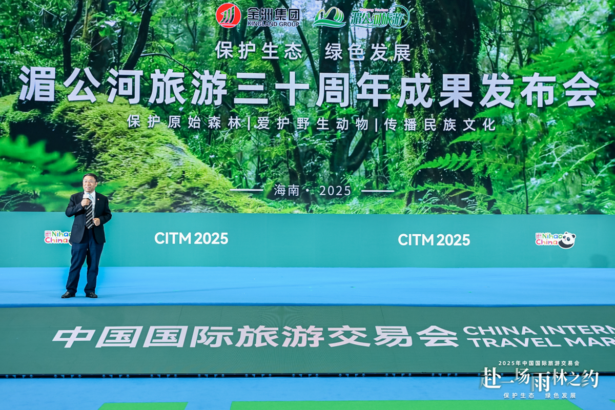 12月19日上午,中国国际旅游交易会在海南海口开幕。湄公河旅游于海南国际会议展览中心主会场举行了成立三十周年成果发布会。金洲集团兼湄公河旅游董事长俞锦方面对来自全球的旅游业界代表及媒体,深情回顾了企业三十年扎根雨林、践行“保护性开发”的初心历程,系统展示了其在生态保护、民族文化传承、乡村振兴及可持续旅游模式探索方面的丰硕成果,并分享了来自质朴家训与军旅生涯的信念源头。