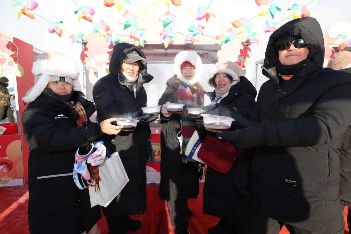 活动还设置民俗特色补给站,参赛选手们在体验冰雪运动同时,更能品尝到热乎的炖江鱼、炖大鹅、水饺等东北年味美食。“在这么冰天雪地里面,虽然说天很冷,但是呢,抵挡不住咱们的这颗热情的心。”贵州游客李泓果说。
