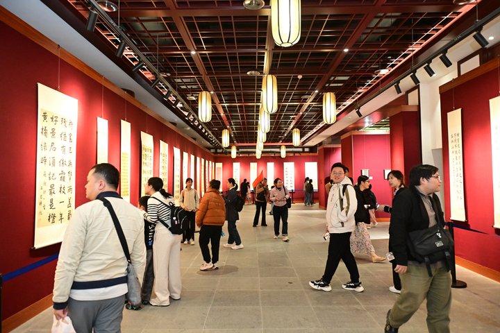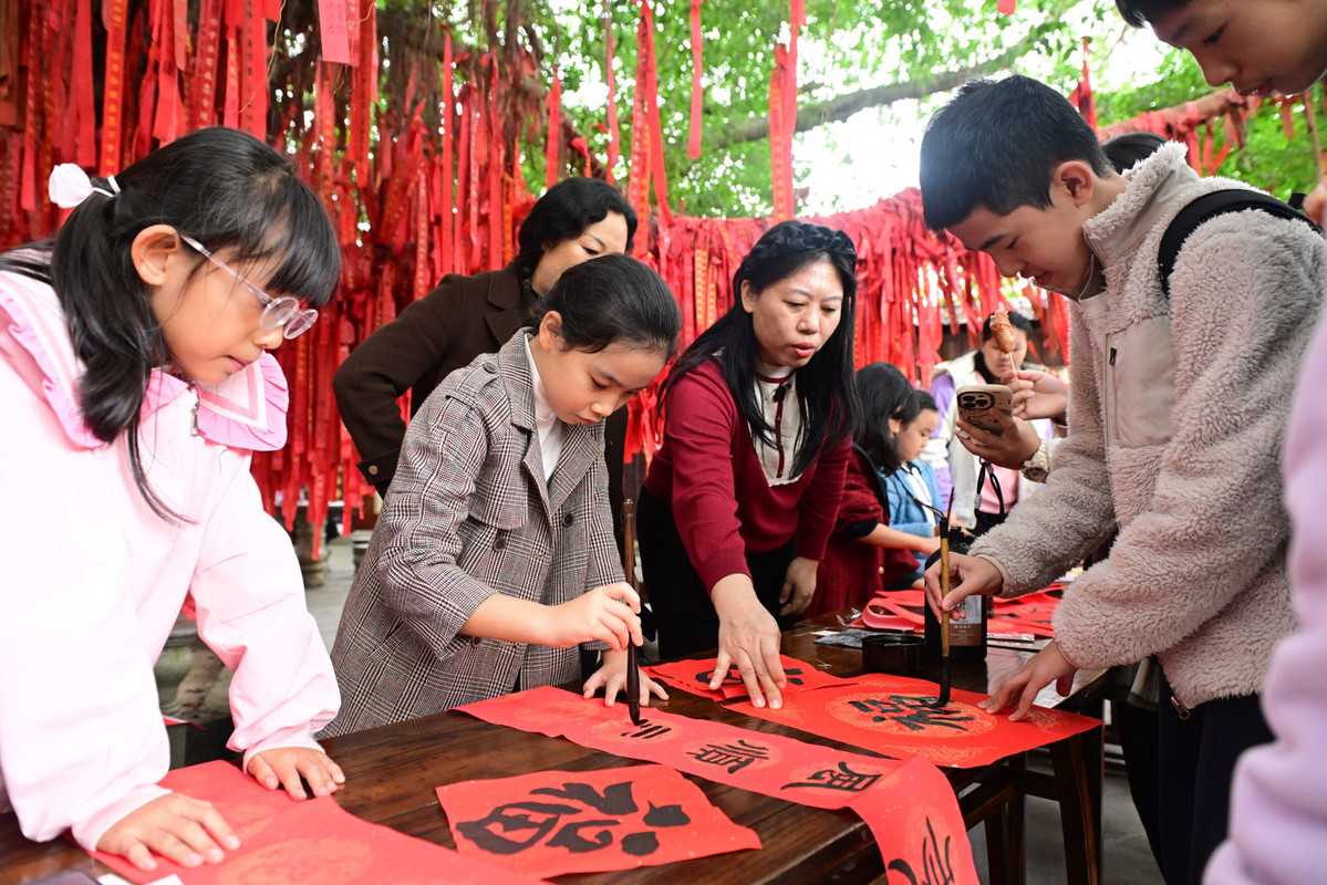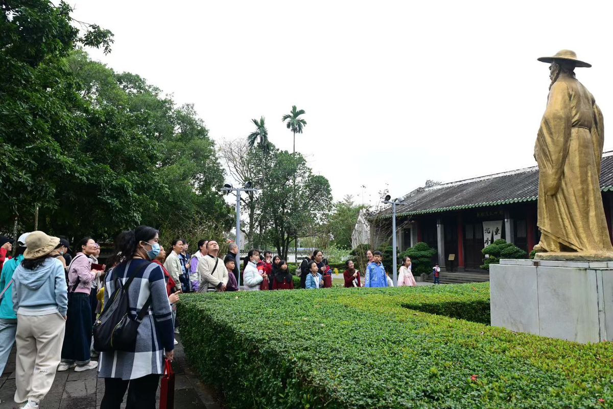 颁奖仪式后,选手及家长在导游的带领下参观东坡书院,深入聆听苏东坡居儋三年的历史故事,参与吟诵东坡诗词、书写春联等特色活动,沉浸式感受东坡文化魅力。随后,众人前往儋阳楼景区参观本届大赛等级奖书法展,近距离欣赏优秀少儿书法作品,交流书法艺术心得。