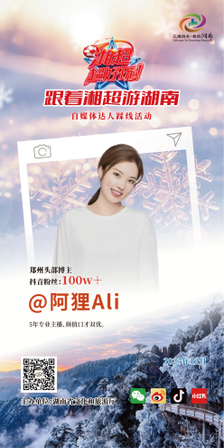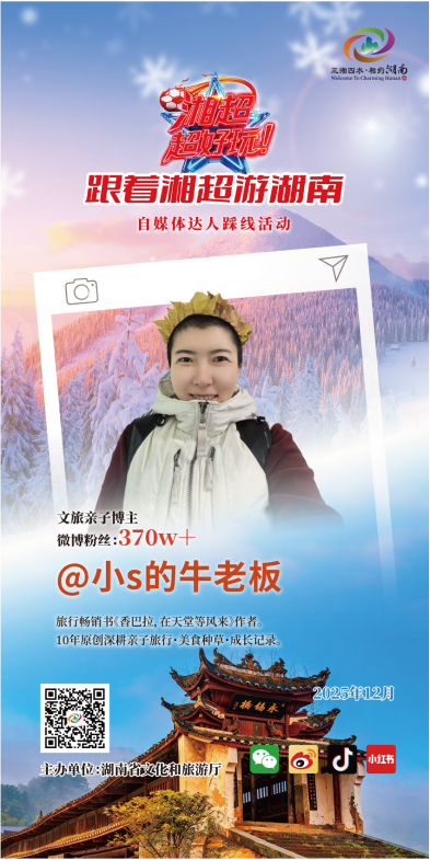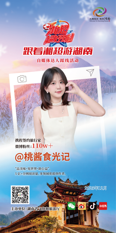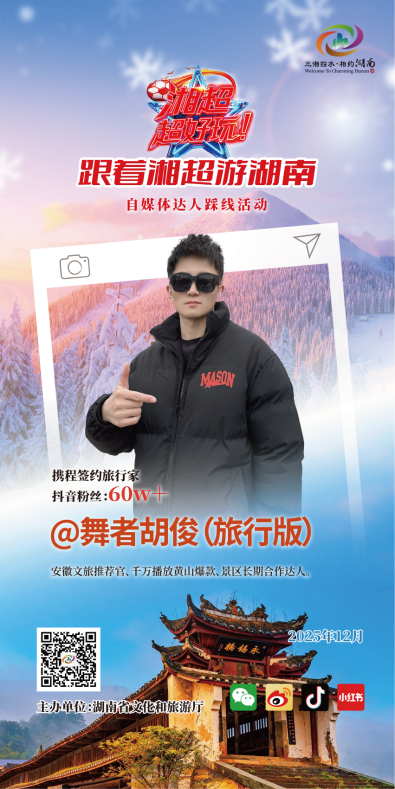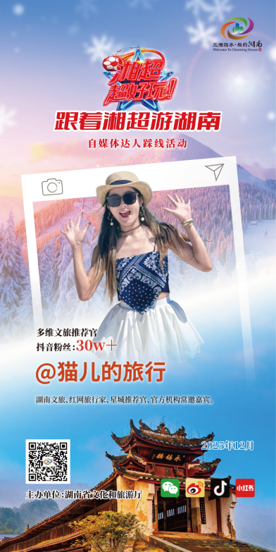 长沙站行程结束后,达人们将分成郴州、怀化、益阳、张家界四个精品体验团,开启深度探秘之旅,打卡体验省文旅厅最新发布的四条冬季秘境路线:“温汤雾凇·湘南秘境之旅”“瑶寨暖冬·南国雪峰之旅”“黑茶围炉·古道寻幽之旅”“仙境雪韵·武陵探秘之旅”,全方位解锁冬季潇湘的多元之美。