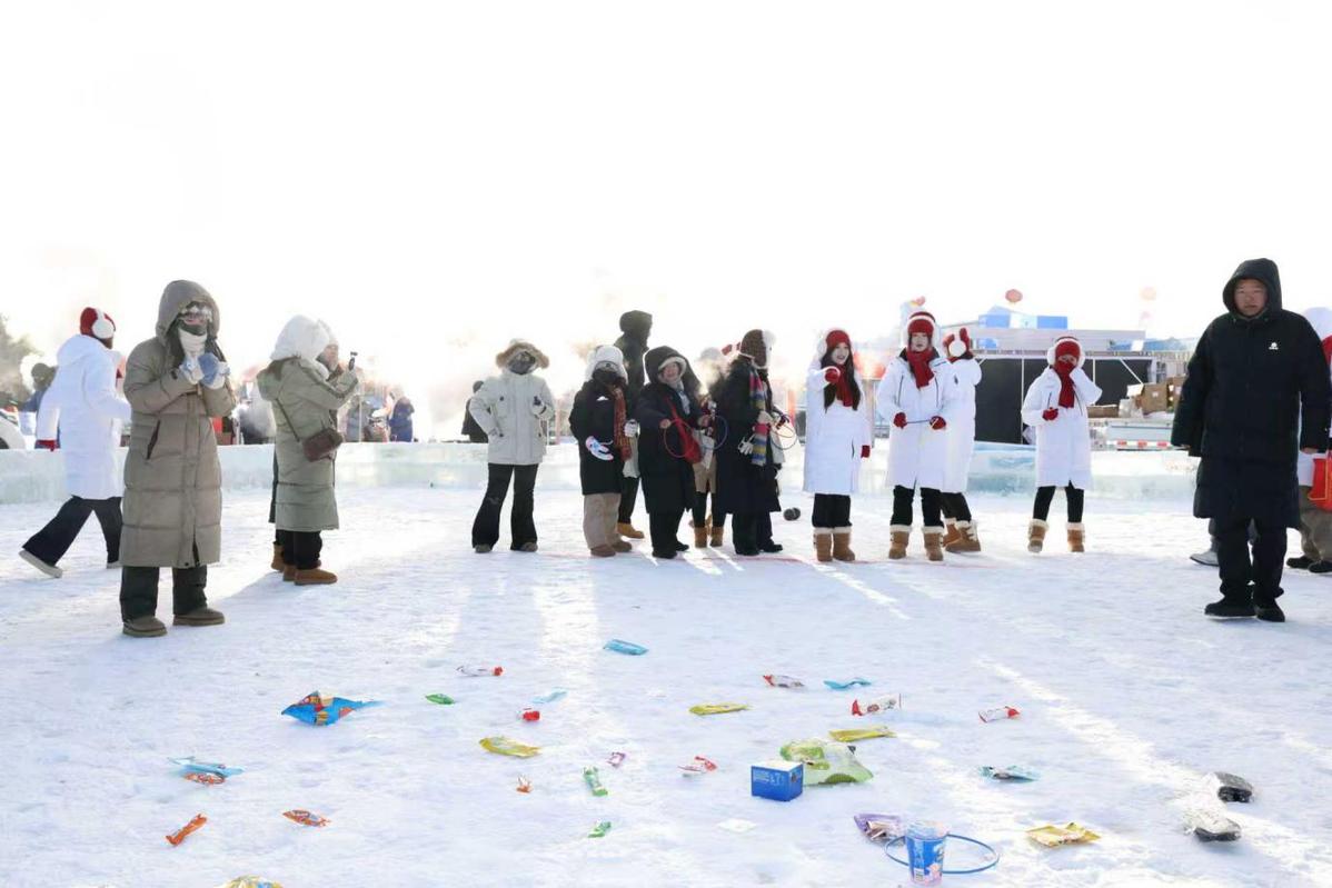 活动设有美食、非遗、文创、招商推介等区域,游客们在体验冰上套圈、雪地寻宝、雪地拔河赛等冰雪趣味项目的同时,还能品尝炖江鱼、炖大鹅、煮饺子、冻梨、冻柿子等特色美食,欣赏桦树皮手工艺品。“在这里特别快乐,刚好还遇见了冬至文化节,感觉东北文化特别浓,哎呀,在这里找到了快乐,激动,非常开心,下次还会来的。”河南游客谷莹莹说。