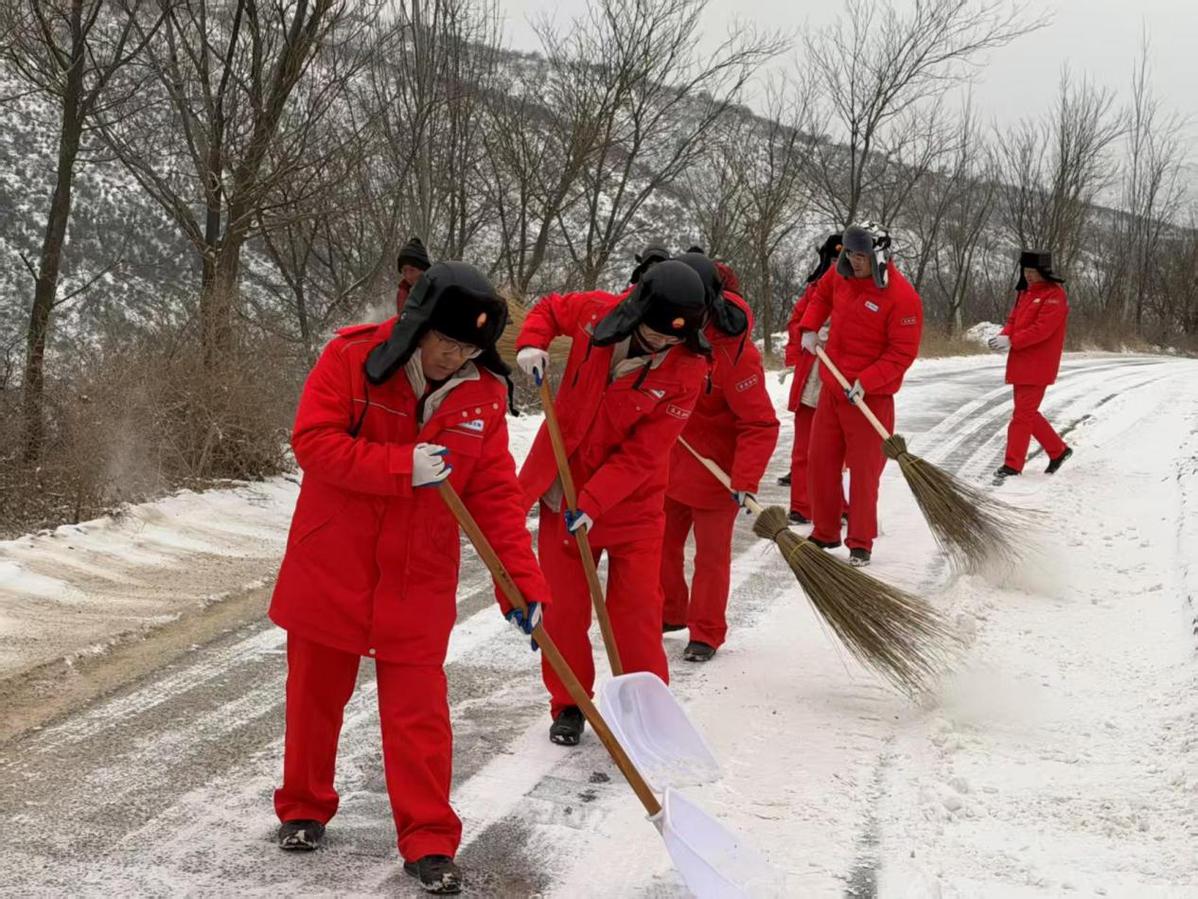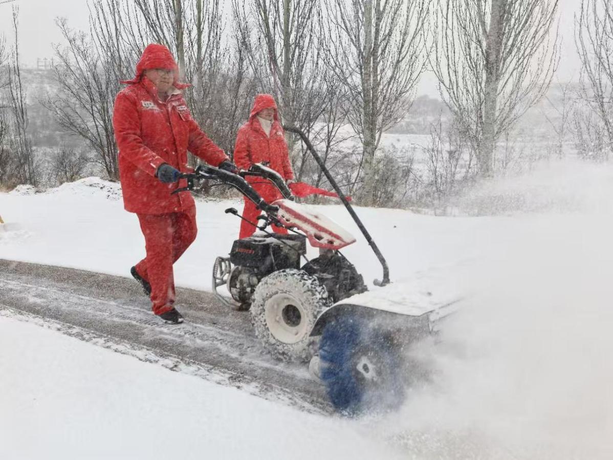 为应对降雪天气,运维中心超前谋划,修订完善《特殊天气应急处置预案》,明确“分片负责、重点突破、全员参与”的清雪机制,划分7个责任片区,配齐铁锹、扫雪板、融雪剂及清雪机等物资设备。降雪伊始,应急响应迅速启动,党员干部率先垂范,带领“党员先锋队”“青年突击队”顶风冒雪奔赴一线。全体人员分工协作、昼夜奋战,扫浮雪、铲坚冰、通要道,经过连续8小时攻坚,累计清理主干道路11条、疏通巡检通道10.2公里、生产区域32处,成功打通原油生产与设备巡检的“绿色通道”。