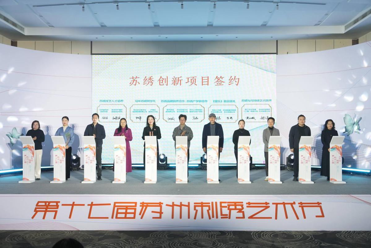 12月23日,第十七届苏州刺绣艺术节在苏州高新区太湖湖畔盛大启幕。本届艺术节紧扣“刺绣生活化”主题,锚定“技艺+产业”融合发展方向,统筹开展2026苏绣新品发布、刺绣体验空间推介等系列活动,以科技与文化的深度跨界融合为抓手,推动千年苏绣实现创造性转化、创新性发展,激活传统技艺传承发展的“蝴蝶效应”。