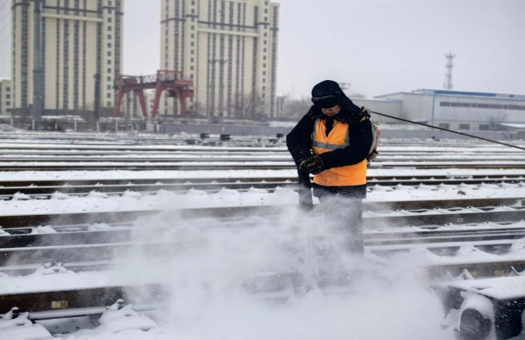 受新一轮冷空气影响,12月23日起吉林地区出现中到大雪天气,气温波动显著。沈铁吉林车务段以雪为令,迅速启动降雪应对预案,组织包站干部奔赴管内49个车站,统筹推进清冰除雪及运输保障工作,各车站同步响应落实安全措施,全力抵御极端天气影响。
