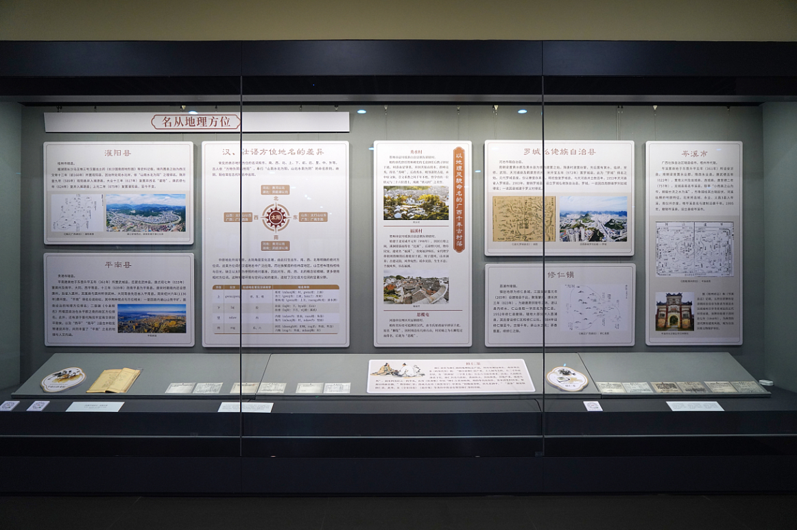 本次展览以“望山 见水 记乡愁”为主题,通过“以山为名”“以水为名”“以形胜为名”“以历史文化为名”“以美好愿景为名”等五个单元,借助图文并茂的展陈、穿越时空的文物、鲜活生动的非遗展示以及沉浸式的互动体验,普及2022至2024年期间认定的56个千年地名的来源、含义与历史沿革,呈现其背后的政治、经济、文化等方面的缩影及其历史内涵,展现广西厚重的地名文化。