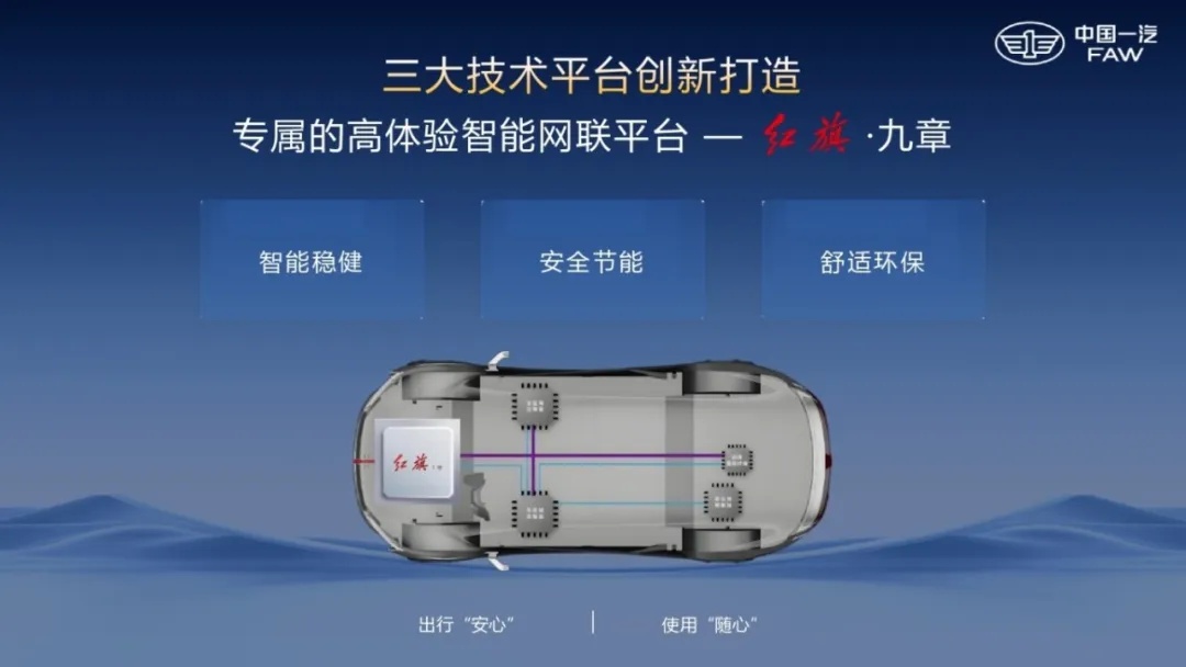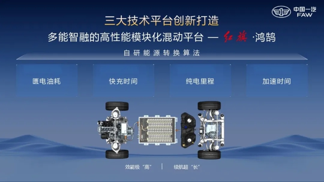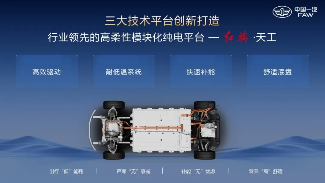 围绕电动化、混动化与智能网联产业趋势,中国一汽创新打造 “红旗・天工”“红旗・鸿鹄”“红旗・九章” 三大技术平台,成为年度创新亮点。“红旗・天工” 作为行业领先的高柔性模块化纯电平台,凭借高效驱动、耐低温系统、快速补能与舒适底盘优势,实现出行“低” 能耗、严寒“无”衰减、补能“无”忧虑、驾乘“高”舒适的用户体验;“红旗・鸿鹄”高性能模块化混动平台以自研能源转换算法为核心,达成效能极“高”、续航超“长”的突破,其 15TD 混动专用发动机热效率达 45.21%,混动专用电驱 HDU35 综合效率达 89%,均处于同级领先;“红旗・九章”智能网联平台聚焦智能稳健、安全节能与舒适环保,国内首发基于惯导三目视觉的城市领航辅助技术,路口通行成功率超 90%,车辆避让绕行成功率超 92%,OTA 升级成功率≥99.9%,综合指标跻身行业第一梯队。三大平台的成熟应用,既支撑了红旗品牌产品焕新,更奠定了未来多品类、多能源产品快速迭代的共性技术底座。