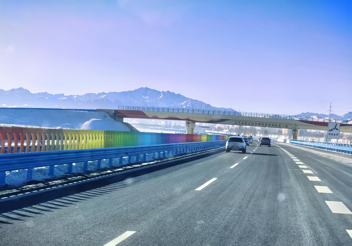 工程建设始终贯彻生态保护理念。乌鲁木齐南收费站脚下是国家二级水源保护地,建设者将收费站设置为双层钢结构设置的二层办公区,减少了传统的收费站管理区。项目约116公里路段生物多样性极为丰富,隧道和大型桥梁类型的动物通道比率占 58.57%。为保障牛羊转场,项目团队在牧民主要出行位置设置了7座通道涵。