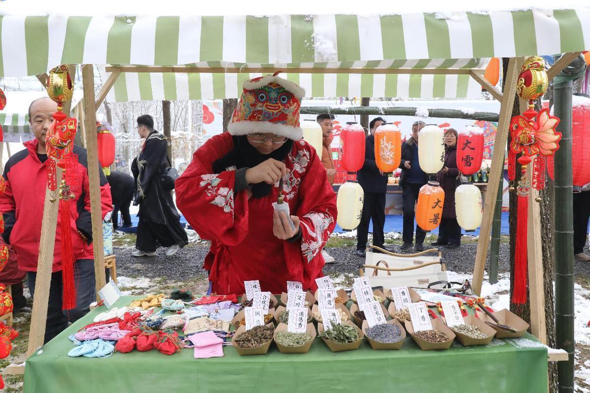 当日上午10时,福禄寿喜使者与财神巡游迎宾,拉开了文化盛宴的帷幕。庄园内,50个精心布设的摊位依次排开,既成为非遗手作、古风文创的展示窗口,也搭建起社区文化共创平台。面塑师傅指尖翻飞间,一朵“牡丹”栩栩如生;古法制香摊位前,草木清香随风弥散;身着汉服的少女手持团扇,在集市中款款穿行。现场,非遗传承人亲授技艺,手作达人分享创作心得,亲子家庭通过闲置物品交换传递环保理念。不少参与者身着传统服饰穿梭于古雅摊位间,沉浸式感受节日氛围。