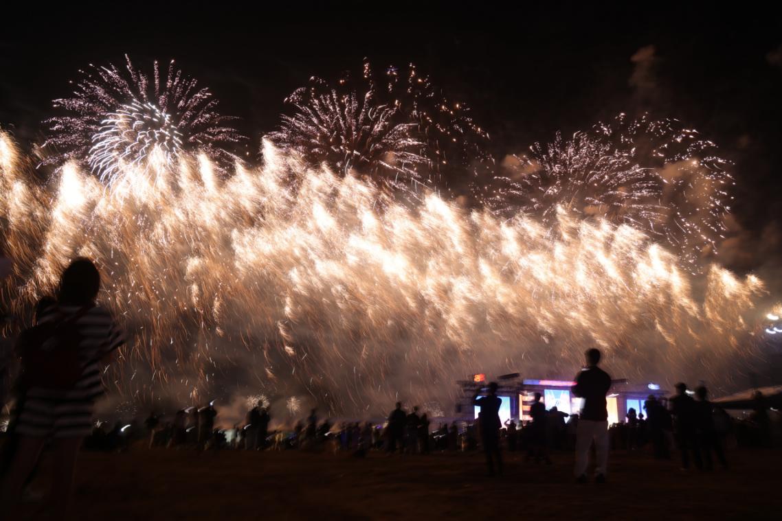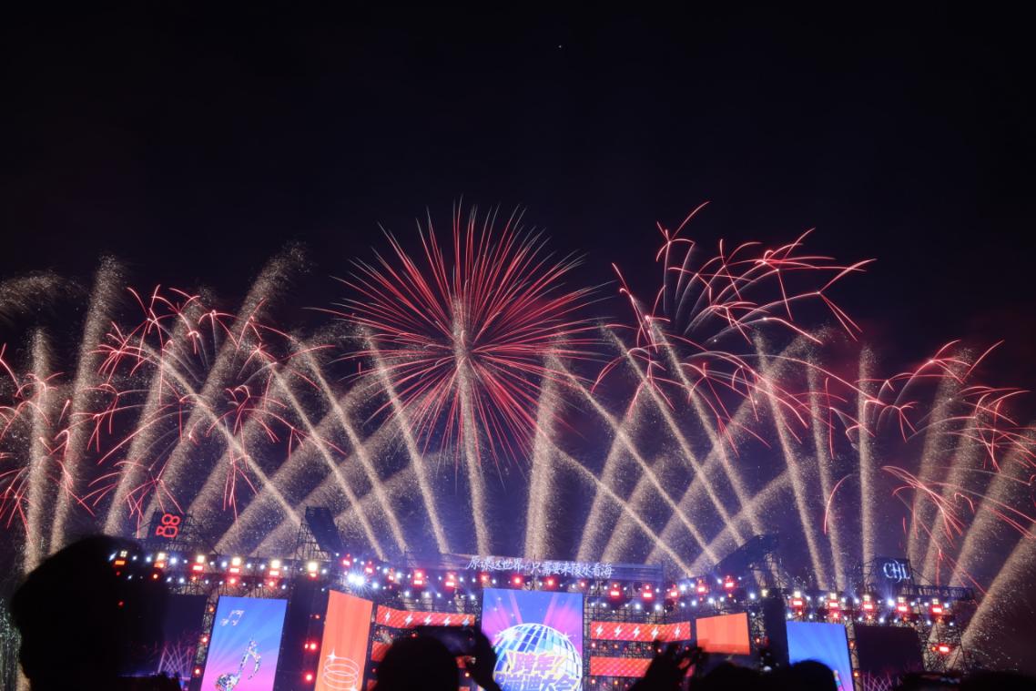 作为盛典核心亮点,三大篇章主题烟花无人机秀为游客带来持续视觉震撼。度假区携手浏阳专业团队与国际设计阵容,精心打造海上焰火盛宴。其中,浏阳花炮节爆款作品“十里桃花”首次登陆海南,6000平方米烟花画卷绽放在夜空,粉白交织、灿若云霞,演绎出“三生三世十里桃花”的浪漫诗境;“七彩祥瑞”与“吉祥花雨”以双层结构交相辉映,流光溢彩中洋溢祥瑞气象;稀缺的浏阳琉璃蓝烟花结合无人机光粒编程“蓝忘今宵”,幽蓝光影点缀深邃夜幕,构成令人难忘的视觉奇观;而金色礼花在中、高、低空三维齐发的“鎏金星河”,宛若银河倾泻,将南海夜空映照得辉煌夺目。零点时刻,盛典迎来最高潮,万千束光焰绽放天际,映照粼粼海面,与现场游客的欢呼和祝愿交织共鸣,为2025年圆满收尾,也为2026年点亮美好开端。