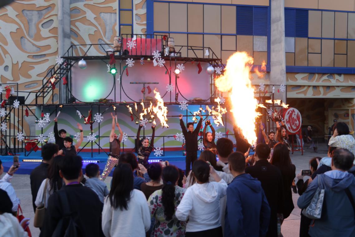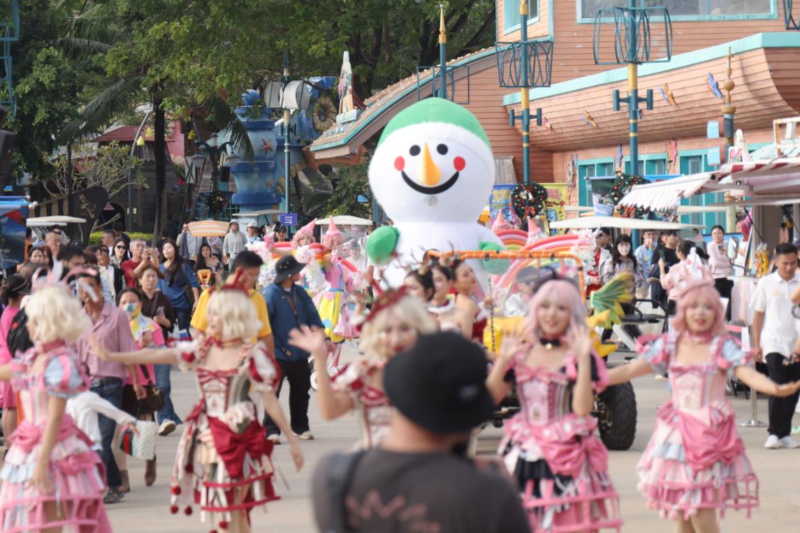 除了烟花盛典与重磅演艺,度假区内的沉浸式体验同样精彩纷呈。3 万余只海洋动物与游客温情互动,南海秘境中美人鱼的翩然转身,让童话照进现实;极地世界的极光小镇里,软萌极地动物与游客亲密贴贴,南国限定的“初雪”簌簌落下,为跨年增添了几分浪漫;20+领航级游乐设施上,尖叫声与欢笑声此起彼伏,释放着一整年的压力;百场限定演艺与NPC花车大巡游穿梭园区,大人与孩童尽情徜徉在欢乐氛围中,阖家同乐的温馨场景随处可见。
