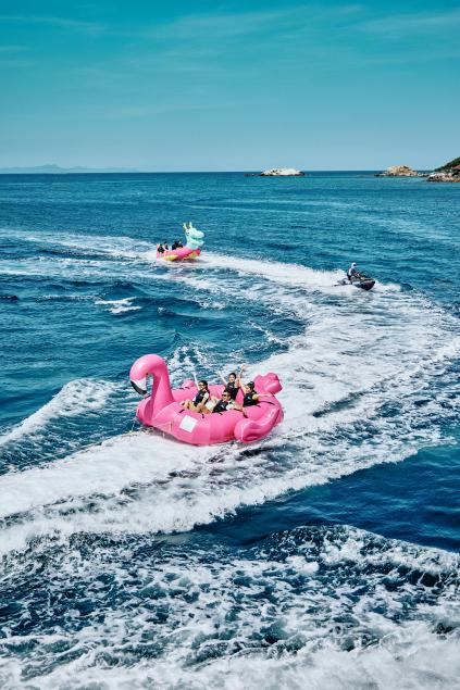 值得一提的是,近期上新的“浮潜”项目凭借其低门槛与高品质,已成为家庭与年轻游客的热门首选。来自广州的游客陈女士分享道:“第一次尝试浮潜,教练讲解很耐心,水下看到的鱼群和珊瑚非常漂亮。”据悉,蜈支洲岛还计划于近期推出升级版主题亲子房、IPK酒吧、鳐鱼互动及飞拉达体验等一系列产品与设施,旨在从住宿、餐饮、娱乐等多维度,持续革新与提升游客的度假体验。