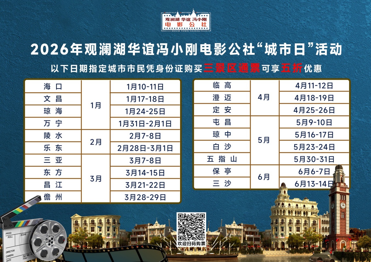 1月10日至11日,2026年观澜湖电影公社“城市日”活动启幕,首站聚焦海口。活动期间,海口市民凭本人身份证可享全票通5折特惠,畅游江城谣·芳华、南洋潮、东方红三大主题景区,在光影实景中沉浸式感受百年人文魅力,这也是海南文旅融合创新惠及市民的生动实践。