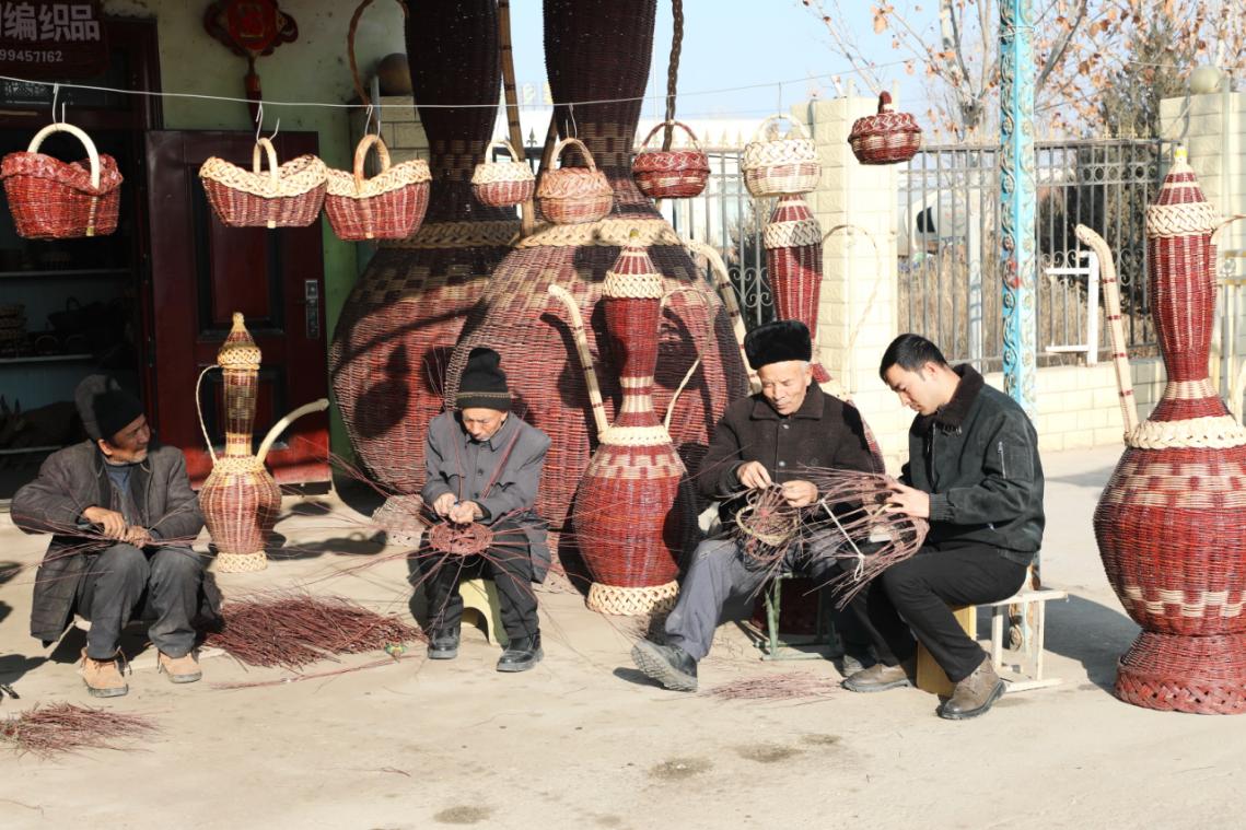 寒冬时节,比西巴格乡林场村的手工业小作坊内却暖意融融,村民们围坐忙碌,有的按订单样式将处理好的枝条精准穿插,勾勒器物雏形;经验丰富的老手艺人在旁指导新手,耐心纠正编织手法。