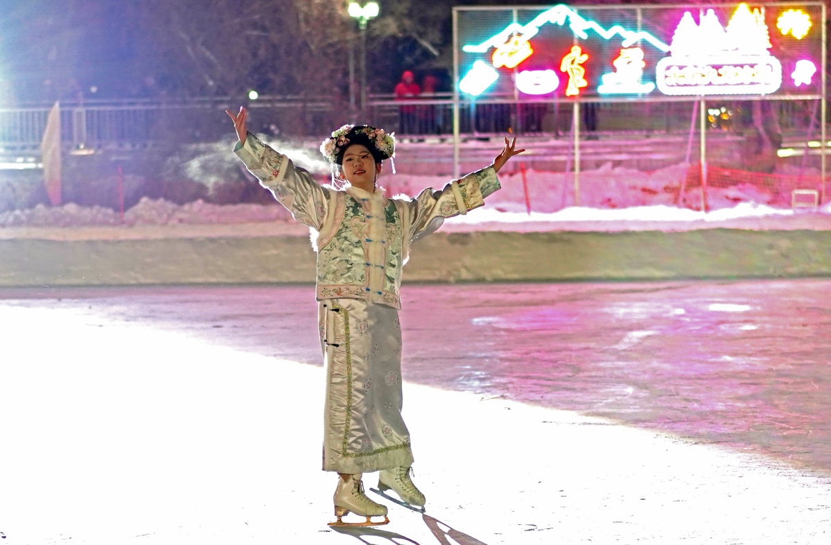 冰上表演环节点燃现场激情:花样滑冰演员翩跹起舞,演绎冰上诗意;冰球运动员疾速冲刺、默契传射,每一次精准射门都引来阵阵喝彩。素有“雾凇之都 滑雪天堂”美誉的吉林市,冰雪运动早已融入城市血脉,从天然冰场到专业场馆,从孩童到运动员,冰雪热情全民共享。