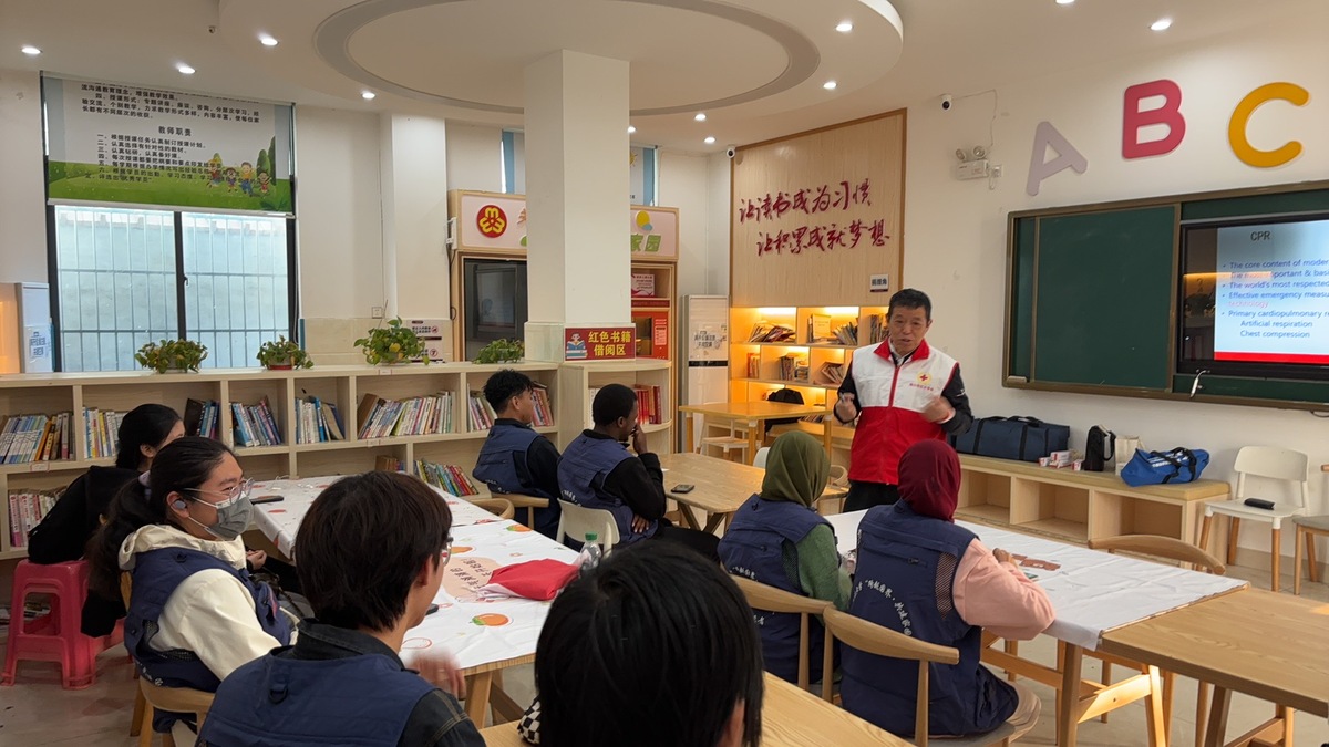 1月14日上午,由海南医科大学“跨越国界·共建家园”国际学生志愿团队协同苍西村红十字会,与海口市“救”在身边红十字会开展的首期国际学生心肺复苏(CPR+AED)急救培训考证班在苍西村委会便民服务中心正式开班。