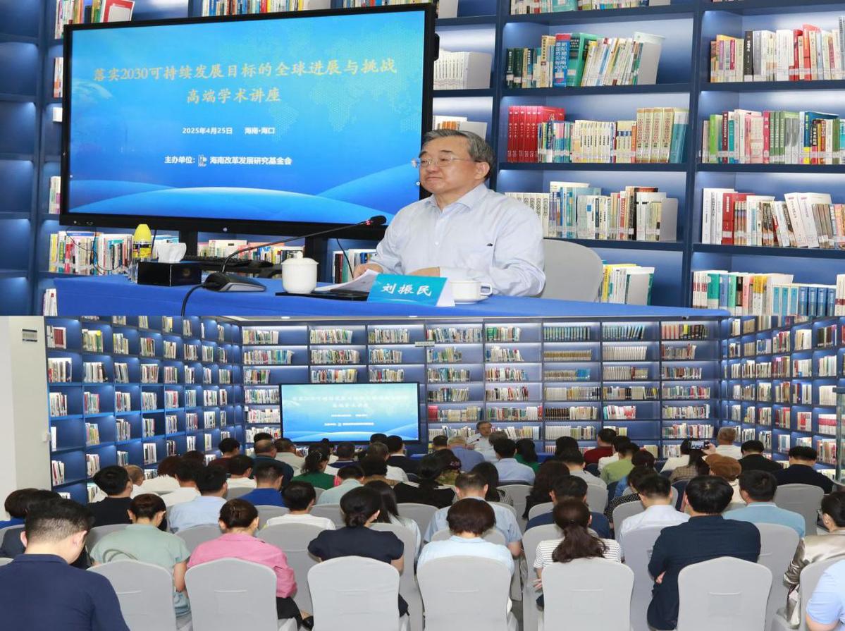 4月25日,邀请中国气候变化事务特使刘振民作高端学术讲座,以“落实2030可持续发展目标的全球进展与挑战”为题,从历史背景、时代意义、现实挑战三个维度深入解析。80余位来自政府部门、高校、企业及商会协会的代表参加,为海南绿色低碳发展提供前沿思路。