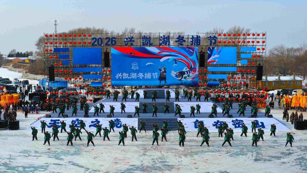 2026年1月17日上午10时,由鸡西市人民政府主办,密山市人民政府承办的2026兴凯湖冬捕节在万里冰封的中俄界湖兴凯湖,拉开了帷幕。来自海内外的游客循着肃慎渔猎文化的足迹,一起揭开了冰雪旅游的“红盖头”。