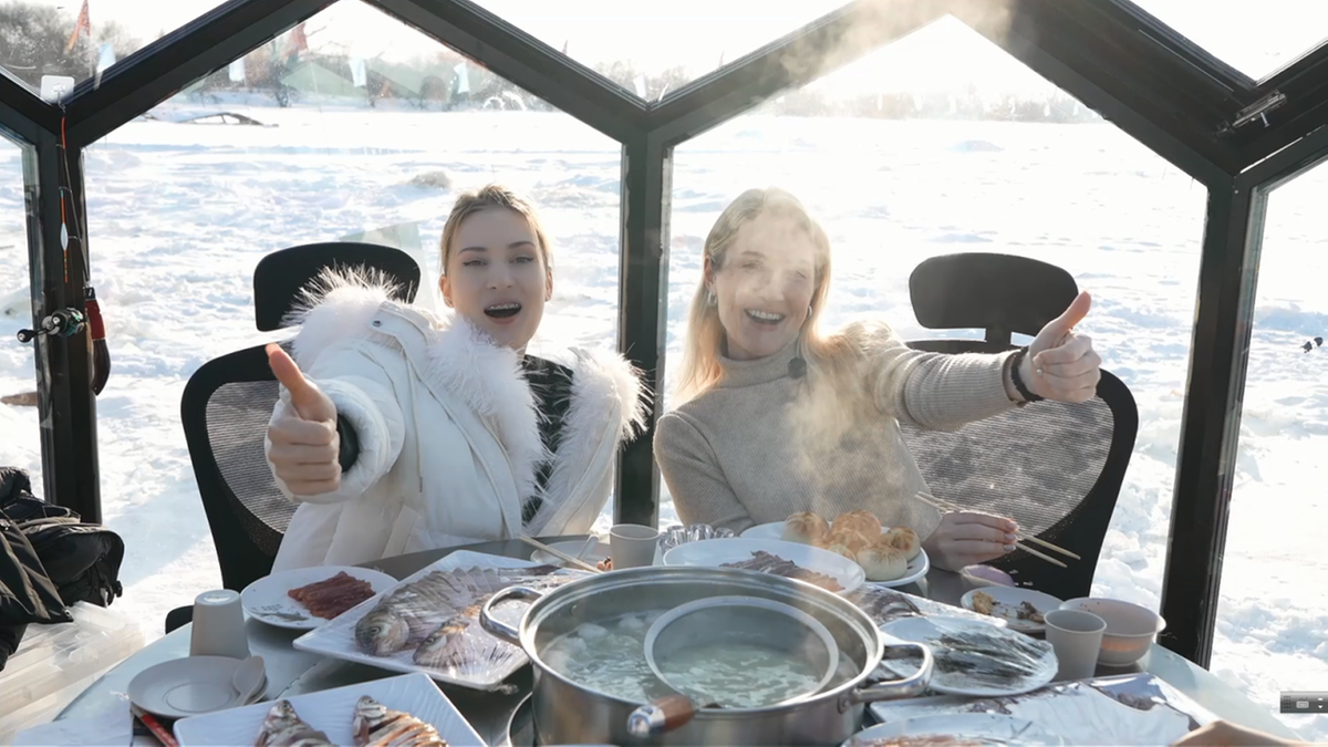 虎林市还对传统冰钓体验进行升级,创新融入“即钓即享”的沉浸式环节。游客们在冰封的乌苏里江江面上挥竿垂钓,亲手感受冬日捕鱼的惊喜。大家围坐品尝地道的特色江鱼火锅,鲜美的鱼肉搭配热乎的汤底,在凛冽寒冬中暖意融融,定格专属虎林的冬日味觉记忆。韩国游客 PARK SEOHEE(朴小希)表示:“这里的一切都深深打动了我,这里既有玩乐的激情,还有文化的厚度,是一次让我难忘且很有意义的旅行。”