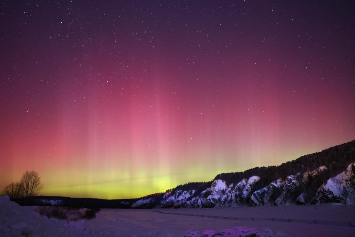 在漠河北极村,已经连续两天出现较为明显的绚丽极光美景,通过肉眼可以看到红色、绿色、紫色的极光在夜空中交相舞动,非常梦幻壮观。大批游客齐聚冰封的黑龙江畔,共同领略了这场极光“开年首秀”。“我们从广州来的,看到了极光非常兴奋,不虚此行。”广东游客谭显杰说。