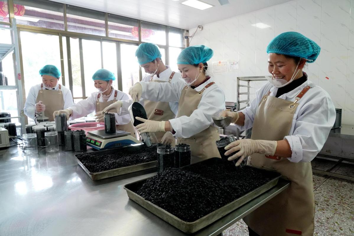 装罐打包车间忙而不乱,村民们忙着分装各类口感的黑豆,封装、贴标一气呵成,让永定炒黑豆香飘四方。(供图)