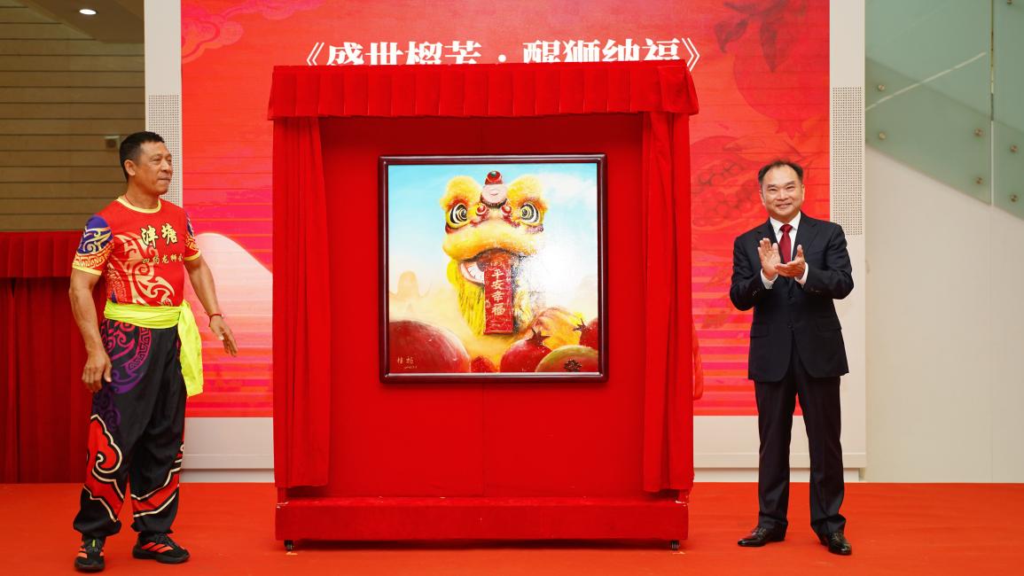 作为《盛世榴芳》系列的新作,本次发布的6幅《迎春颂》作品紧扣“新春纳福·民族团结”主题,将象征中华民族团结一心、繁荣昌盛的石榴元素,与醒狮、花市、骑楼、潮汕工夫茶等岭南文化符号融合,通过西方油画写实与中国传统写意相结合的创作手法,展现出岭南文化务实兼容的精神特质,传递出民族团结、喜迎佳节的美好寓意。现场同步推出基于画作设计的红包封面,供市民免费领取。