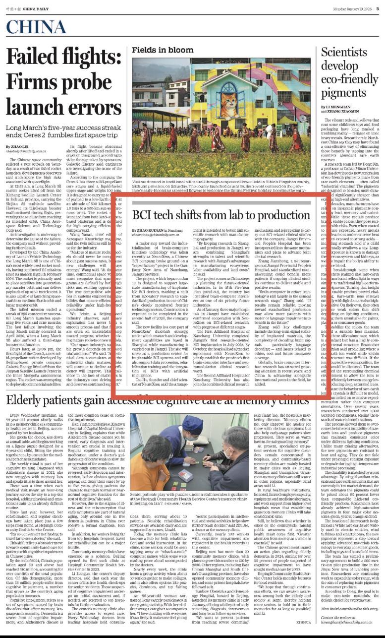 “脑机接口技术目前仍处于临床研究阶段,”张建中说,“在确保安全性和稳定性的前提下,推进标准化生产,有望扩大未来在运动功能或语言功能障碍等领域的应用空间。”