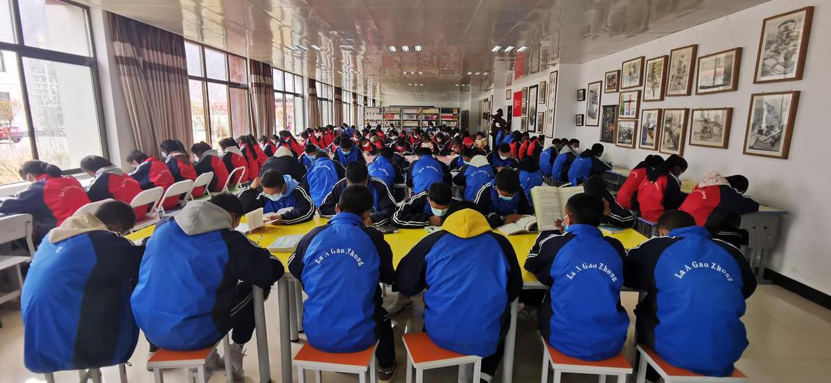 拉萨阿里地区高级中学的学生在“晨光书屋”阅读