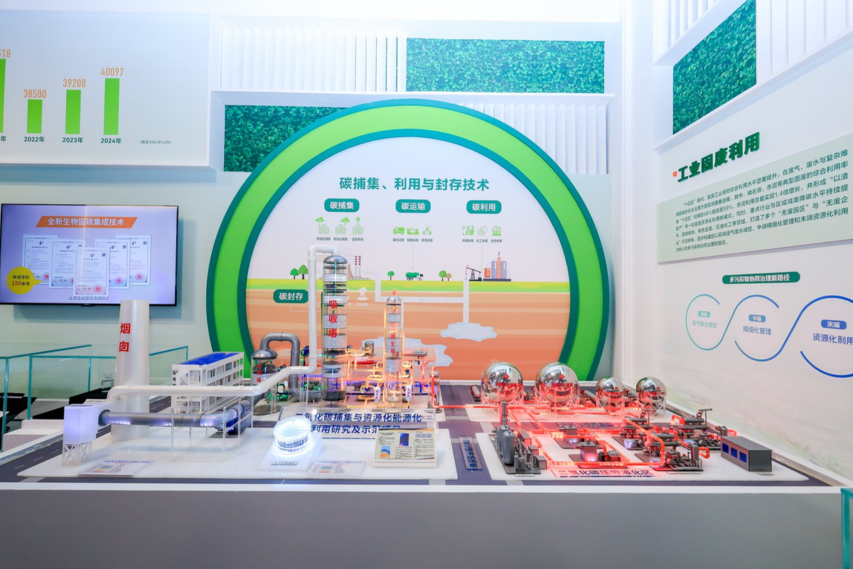 展厅内另一组展品则呈现出别样的技术质感——国家能源集团50万吨/年CCUS示范项目精细沙盘,直观展现了我国工业在碳减排领域的实践成效与技术实力。