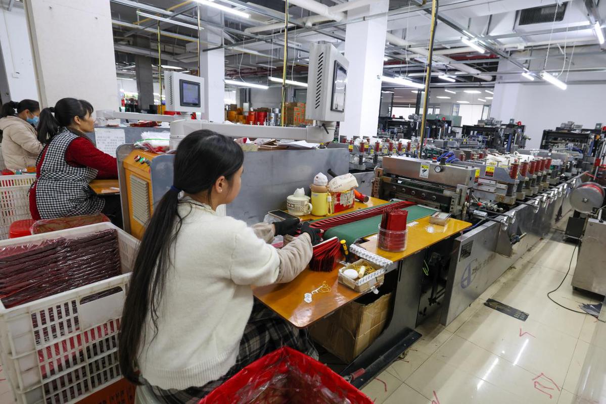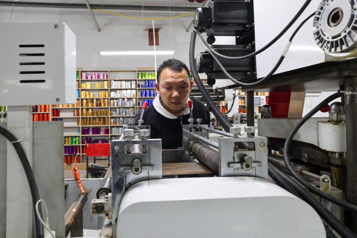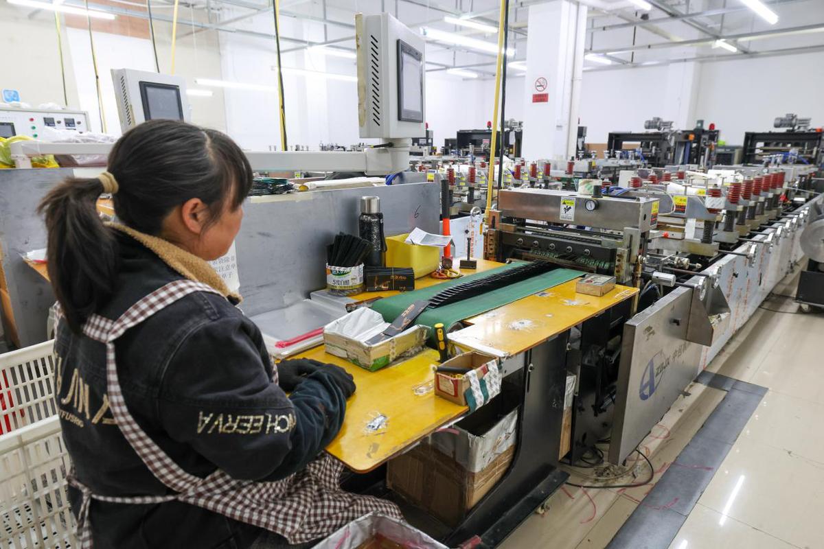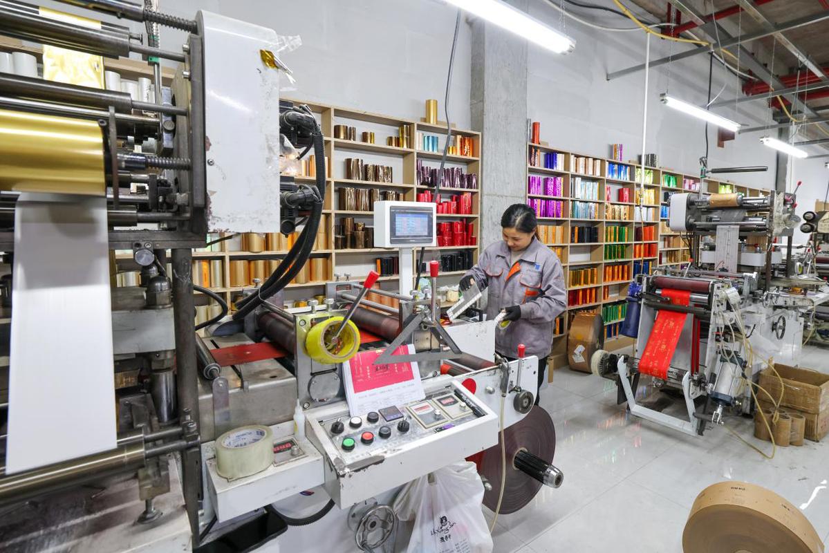 1月27日,工人在武夷山旺角包装文化创意园有限公司全新数码泡袋打印工艺上线作业。(邱汝泉 摄)