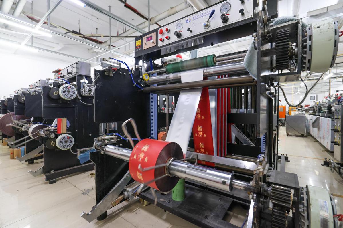 1月27日,武夷山旺角包装文化创意园有限公司的全新数码泡袋打印工艺自动生产线。(邱汝泉 摄)