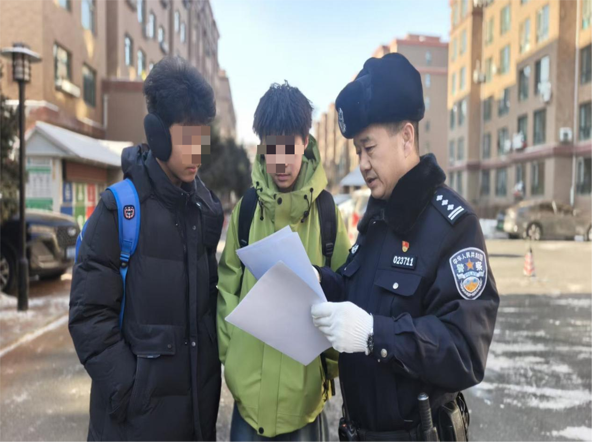 “老板,咱们新店马上开张,但千万别通过燃放烟花爆竹进行庆祝!”“孩子们,禁止燃放区域已经明确,过年可不能放鞭炮,既违法又不安全!”呼兰区的街头巷尾警灯闪烁,巡逻民警在往来人群中穿梭,一边维持秩序,一边向商户和群众发放宣传单,介绍非法运输、非法储存、违规燃放所需承担的法律责任。每当看到带孩子的家长时,民警也主动上前,用通俗的语言讲解违规燃放的后果,并结合以往曾发生过违规燃放引发火灾、伤人事件等真实案例,耐心解答相关法律法规问题,提醒家长加强看护,避免孩子做出危险行为。