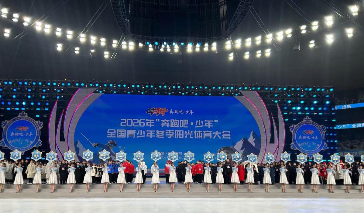 (图片为2026年“奔跑吧·少年”全国青少年冬季阳光体育大会开幕式现场)