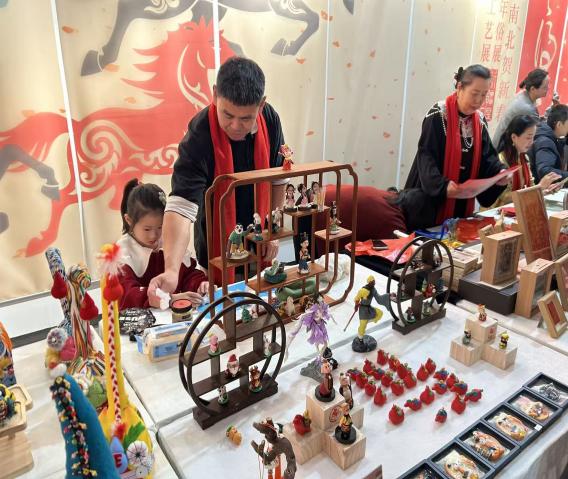 同时,主会场还同步开展多项非遗体验活动,“时和岁丰”翰墨迎春活动:邀请观众在非遗传承人指导下亲手书写春联与“福”字,学习剪纸技法并共同装饰新春主题展示区;“骏马骄行”折纸祈福活动:观众可以跟随非遗传承人学习折纸技艺,并将亲手折叠的纸马悬挂于祈福区,寓意“春风送福”;“春风得意”新春游艺活动:设置拓印、皮影戏、糖画、陶瓷彩绘、泥塑等多项趣味体验,让观众在动手制作中感受非遗魅力。