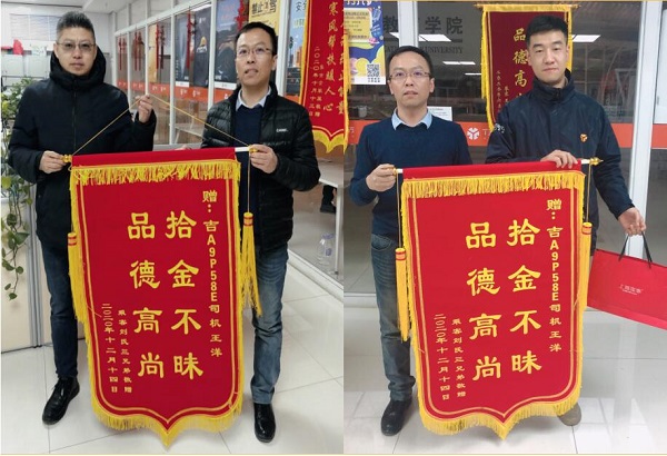 近日,乘客刘先生将一面写有“拾金不昧 品德高尚”的锦旗送到了T3出行长春公司,并提出要当面感谢T3出行的司机王洋王师傅。“必须要对王师傅说一声谢谢!现在手机里都存着大量重要信息,丢了真的特别麻烦,所以特别感谢王师傅帮我把手机送还!”