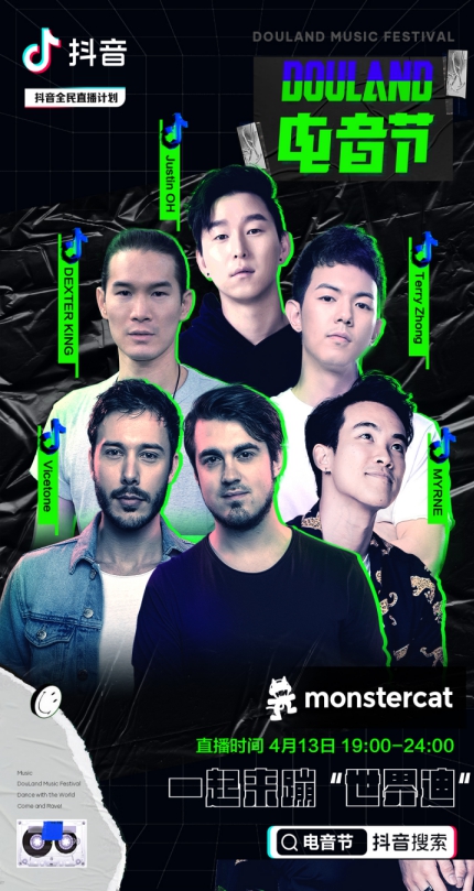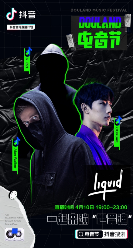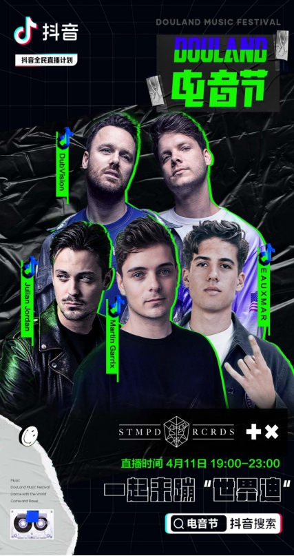 4月10日,抖音直播开启“云音乐节”模式尝新,推出全民直播计划音乐垂直板块的子项目“DouLand电音节”,这也是一档专业的电音直播栏目。本次“DouLand电音节”专场直播活动邀请到全球百大DJ排行榜的顶级DJ们进行中国直播首秀,其中包括有“教主”之称、国内最受欢迎的全球百大DJ——Alan Walker、比利时兄弟 Dimitri Vegas &Like Mike、以及年仅24岁的电音天才、2019百大DJ第二名的Martin Garrix开启线上“炸场”。