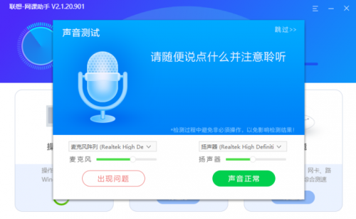 联想网课助手是联想服务为用户开发的一款用于检测电脑性能的工具。该工具将从系统、硬件、网络3个维度对电脑进行检测:系统检测包括操作系统;硬件检测包括CPU、内存、硬盘、麦克风、摄像头;网络检测包括有线/无线网卡、DNS、路由器延迟、局域网设备数量、综合网络测速。用户根据检测结果提供的优化解决方案,可触达联想官方提供的服务产品,选择优质服务,解决影响网课使用的难题。用户可在安装联想网课助手软件后,点击同意《联想服务工具使用许可协议》后,对麦克风、摄像头、操作系统、硬件及网络检测进行检测!