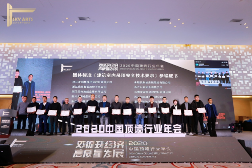 在充满挑战的2020年,协会与行业人携手并肩、攻坚克难。年会现场进行表彰并颁发顶墙行业先进单位、优秀职业经理人、先进工作者、五星级示范店、优秀经销商、团体标准《建筑室内吊顶安全技术要求》参编证书、家居装饰装修材料行业抗击新冠肺炎疫情抗疫先锋,协力推动行业持续向好发展。